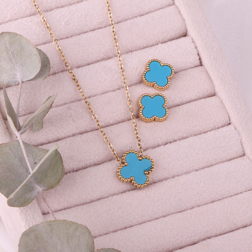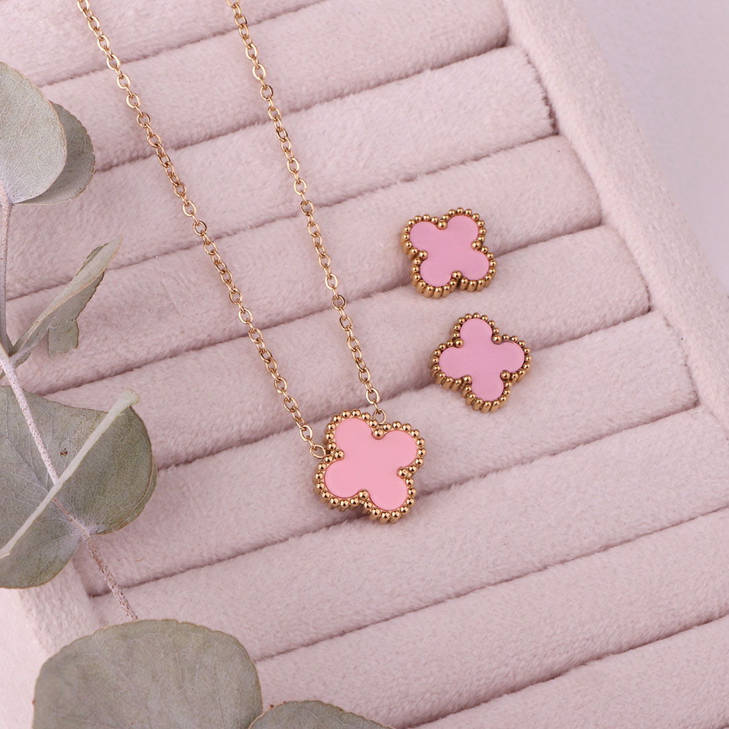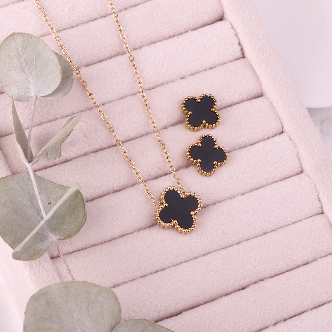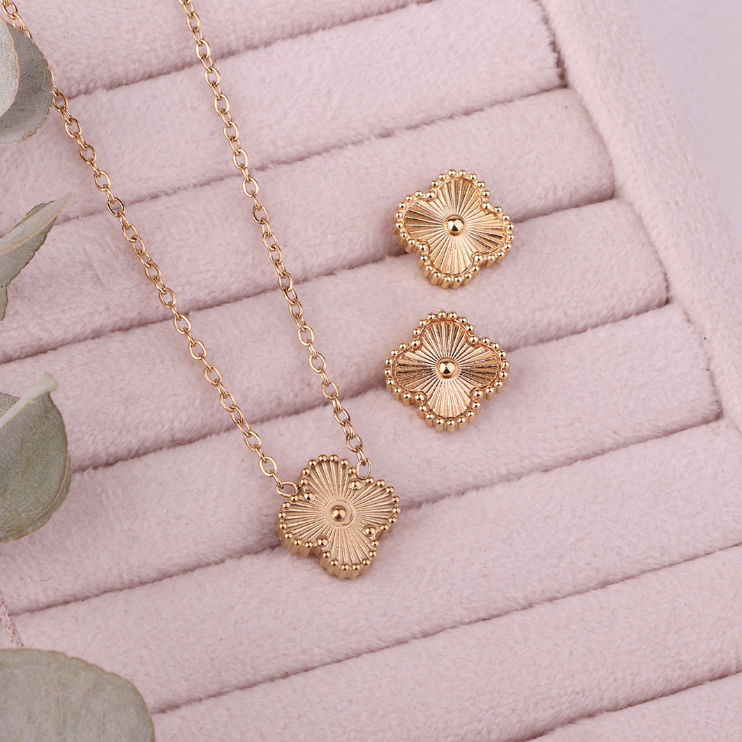 نیم ست استیل ونکلیف تک گل طلایی تراش