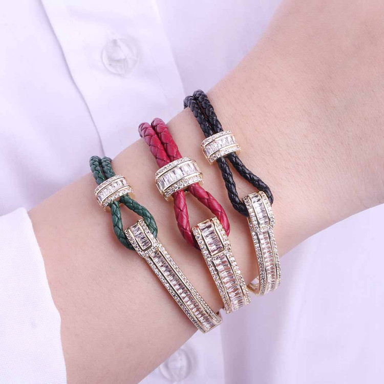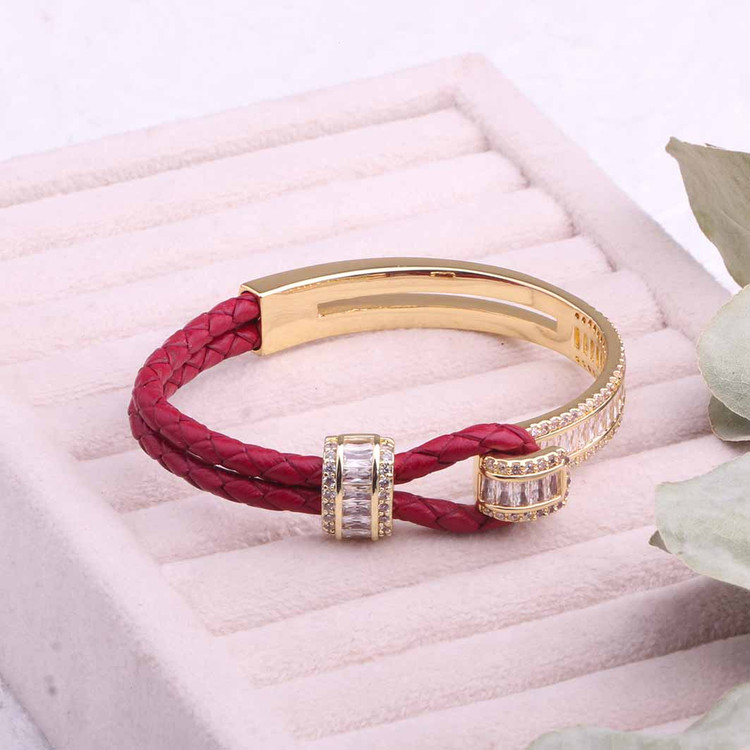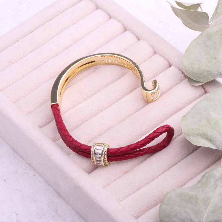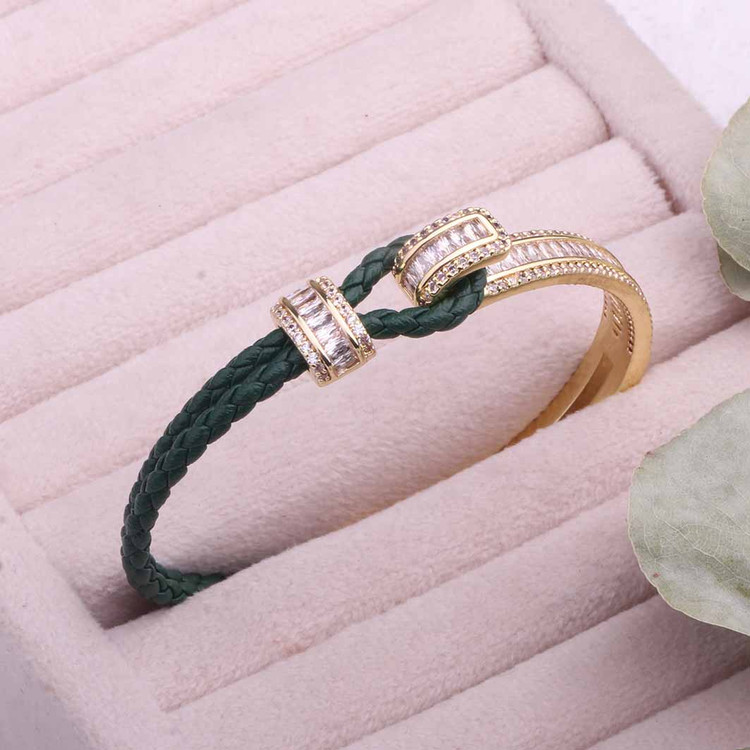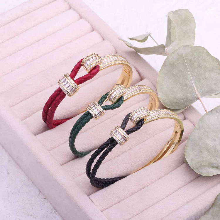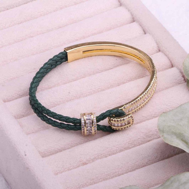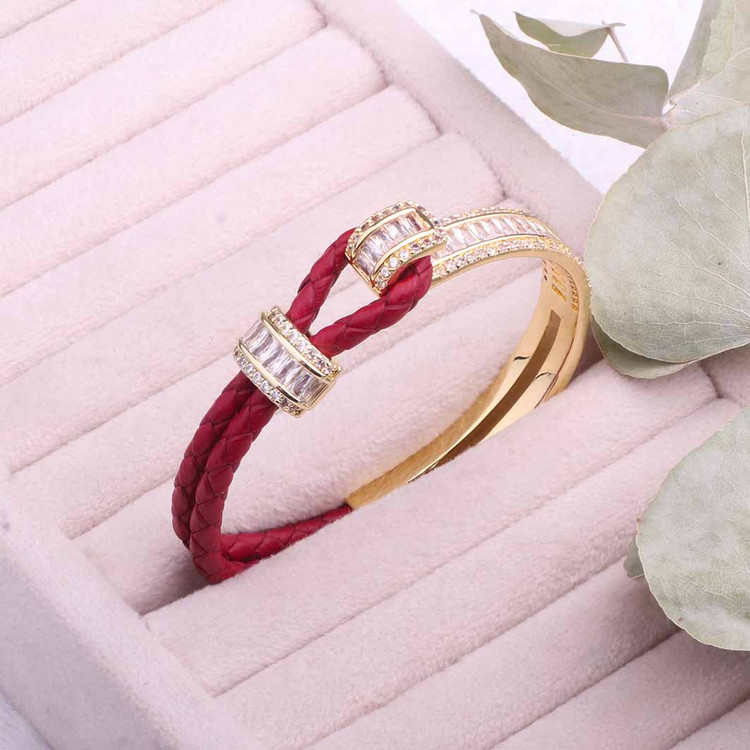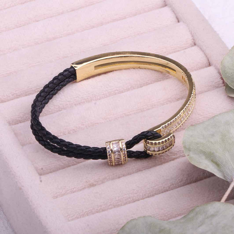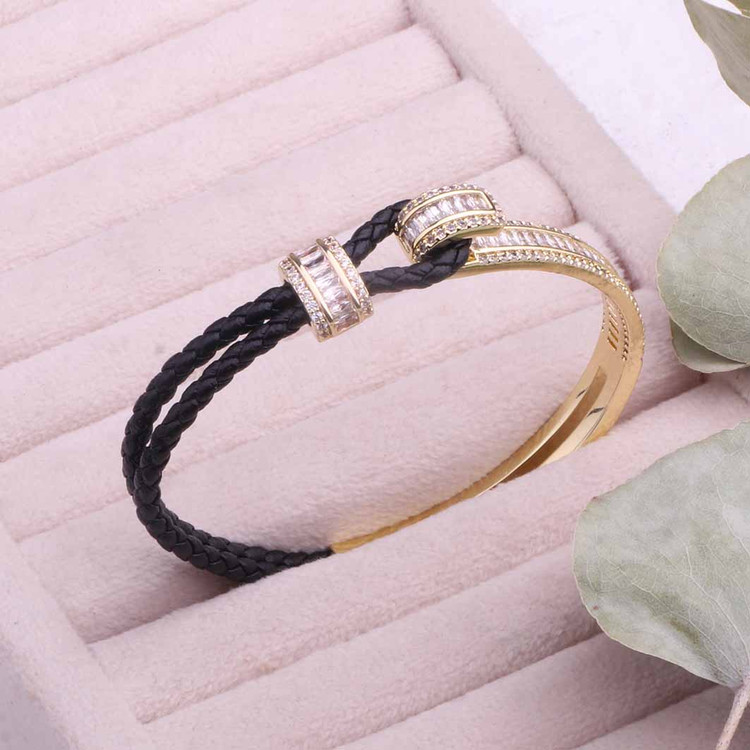 دستبند جواهری ترکیب چرم و فلز آبکاری طلا
