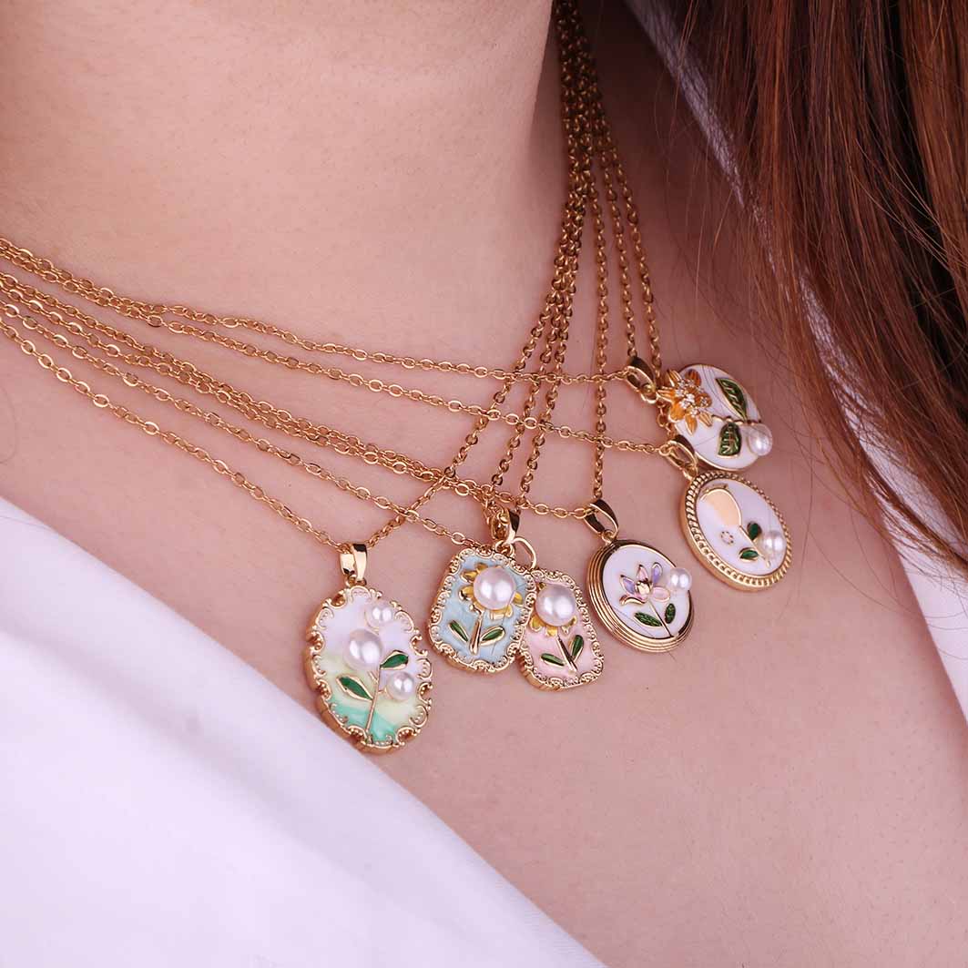گردنبند میناکاری طرح گل