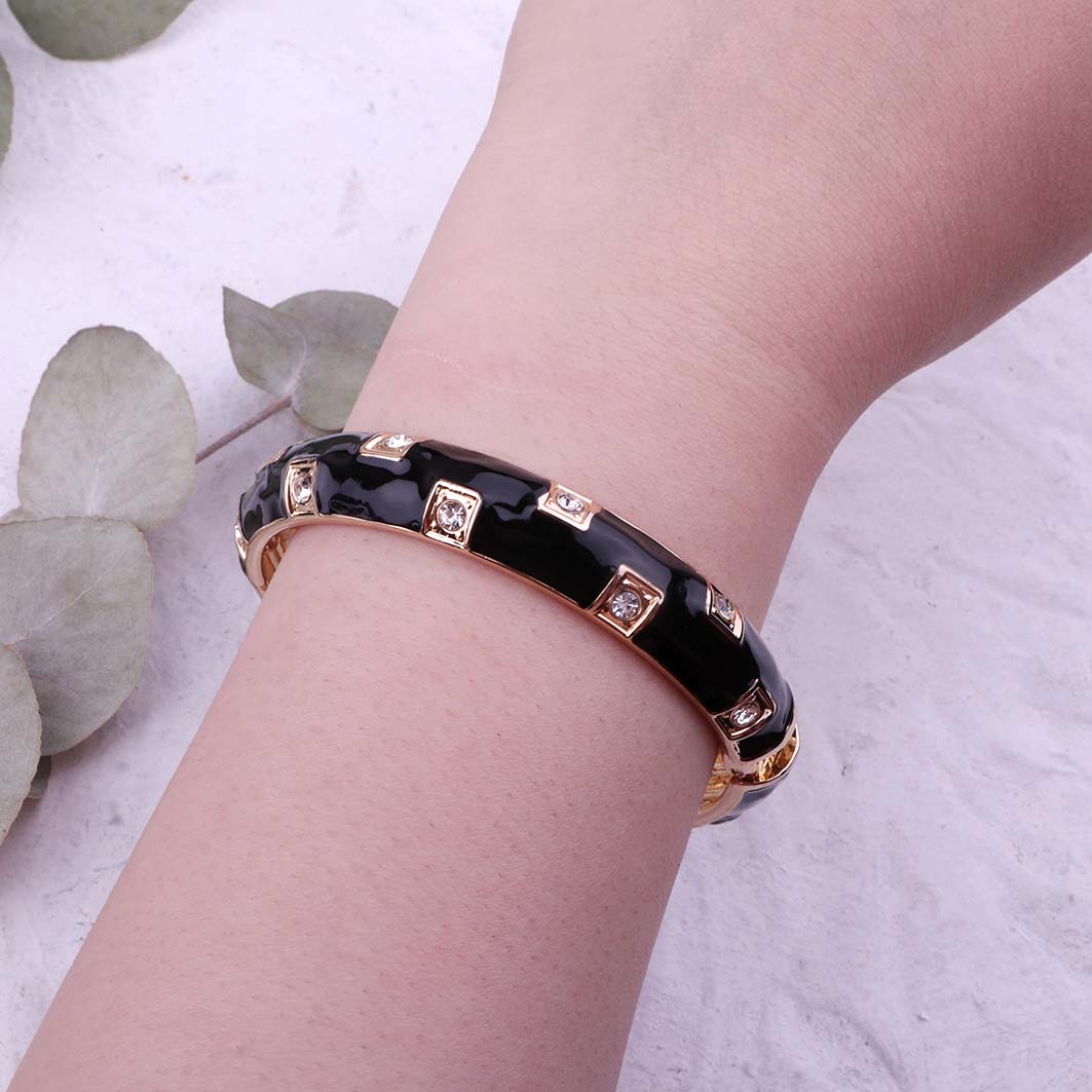 بنگل میناکاری مشکی نگین