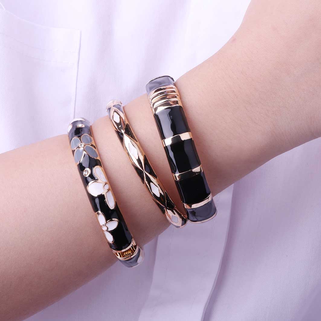 بنگل میناکاری مشکی گل