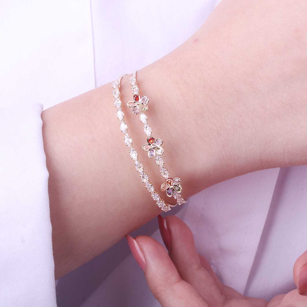 دستبند النگویی دو لاین طرح طلا شکوفه