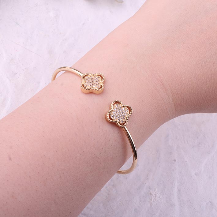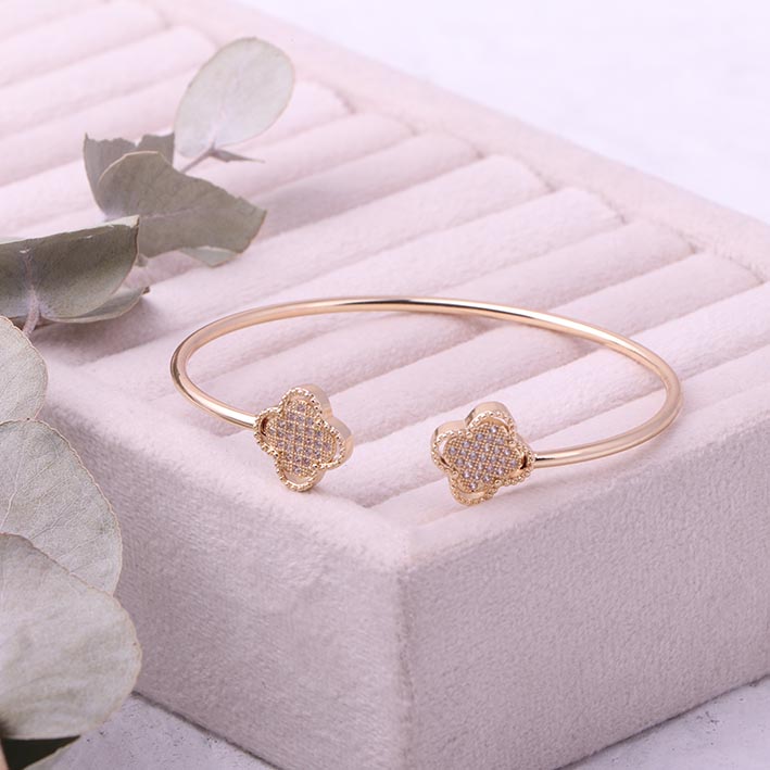 دستبند النگویی ونکلیف دو گل طرح طلا