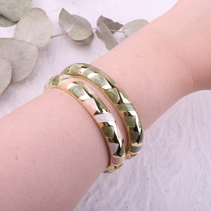این دستبند با الهام از رنگ های بهاری طراحی شده و ترکیب رنگ طلایی براق با سطح مینایی جلوهای بسیار ظریف و لوکس به آن داده است. طراحی آن بهگونهایست که هم برای استفاده روزمره مناسب است و هم در استایلهای رسمی جلوه خاصی ایجاد میکند.