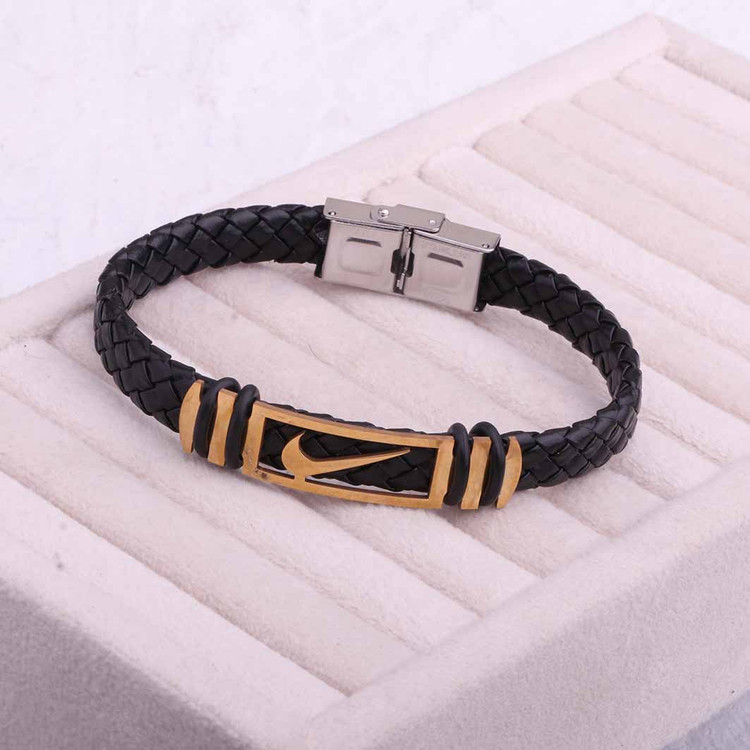 دستبند چرمی مردانه با پلاک فلزی طرح نایک