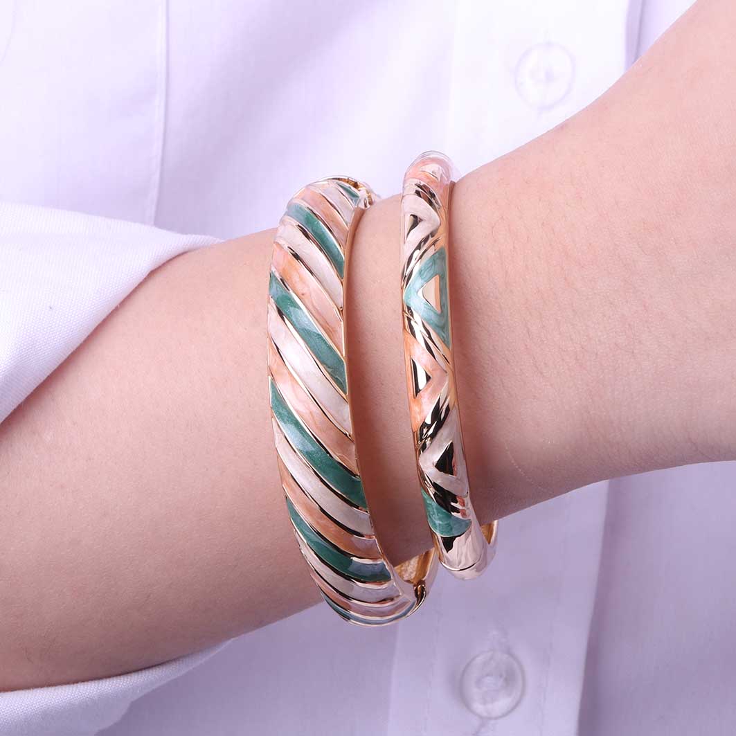 این دستبند با الهام از رنگ های پاییزی طراحی شده و ترکیب رنگ طلایی براق با سطح مینایی جلوهای بسیار ظریف و لوکس به آن داده است. طراحی آن بهگونهایست که هم برای استفاده روزمره مناسب است و هم در استایلهای رسمی جلوه خاصی ایجاد میکند.