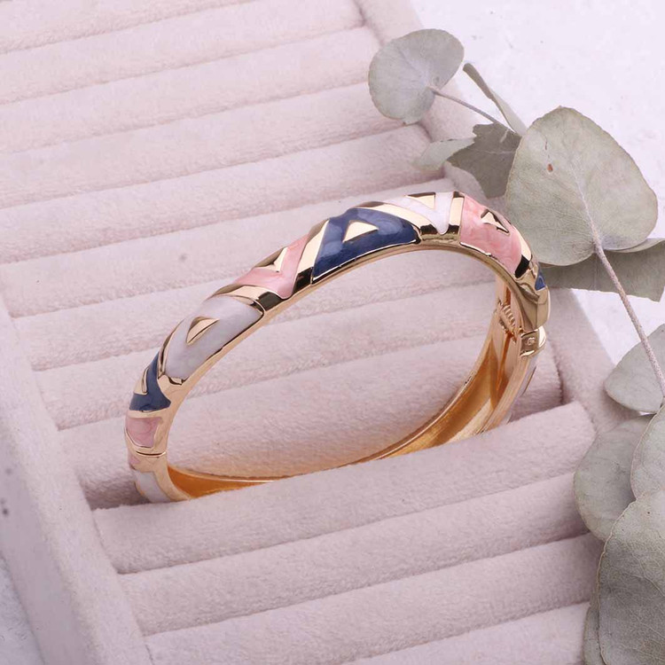 این دستبند با الهام از رنگ های بهاری طراحی شده و ترکیب رنگ طلایی براق با سطح مینایی جلوهای بسیار ظریف و لوکس به آن داده است. طراحی آن بهگونهایست که هم برای استفاده روزمره مناسب است و هم در استایلهای رسمی جلوه خاصی ایجاد میکند.