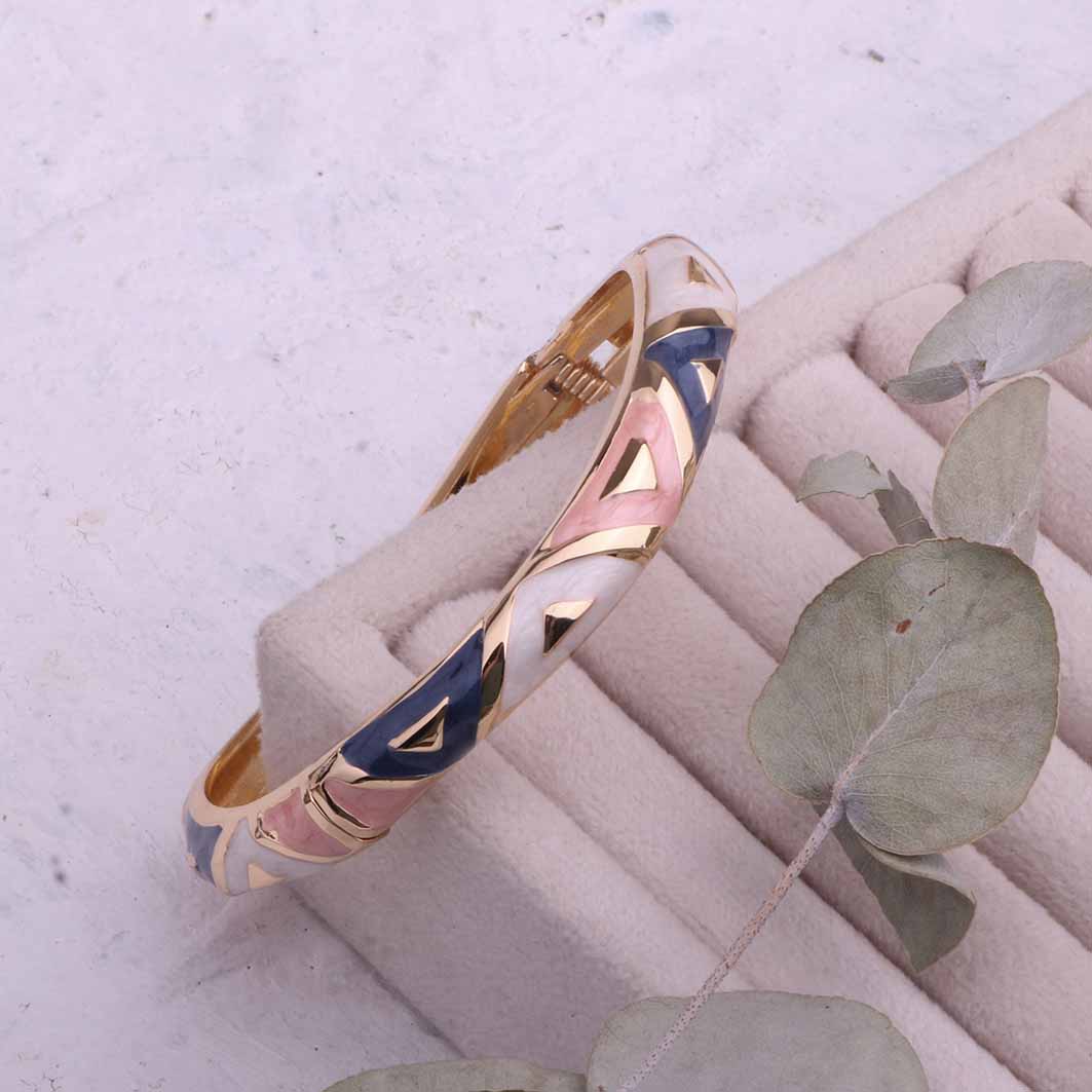 این دستبند با الهام از رنگ های بهاری طراحی شده و ترکیب رنگ طلایی براق با سطح مینایی جلوهای بسیار ظریف و لوکس به آن داده است. طراحی آن بهگونهایست که هم برای استفاده روزمره مناسب است و هم در استایلهای رسمی جلوه خاصی ایجاد میکند.